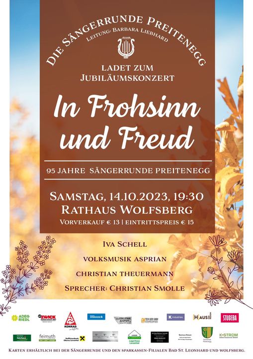 Fest der Chöre – 84. Gausingen am 1. Juli 2018 in Preitenegg Die Sängerrunde Preitenegg ladet hiermit alle zum diesjährigen Fest der Chöre, das heuer in Preitenegg stattfindet, recht herzlich ein! Wir freuen uns auf Euren Besuch! Das Programm: